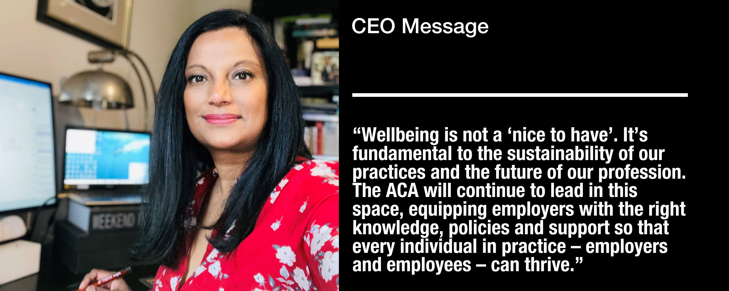 Wellbeing is not a “nice to have”. It’s fundamental to the sustainability of our practices and the future of our profession. The ACA will continue to lead in this space, equipping employers with the right knowledge, policies and support so that every individual in practice – employers and employees – can thrive.