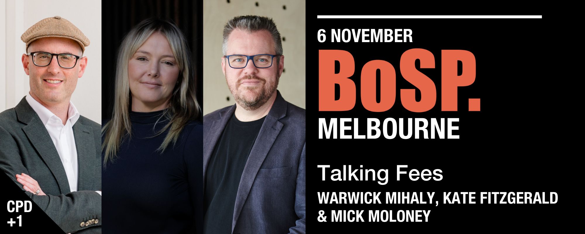 The trio has tackled the taboo issue of fees in the past on episodes of their podcast and a previous BoSP online discussion on fee variations. They’ve previously received an overwhelming amount of feedback from their listeners about the use of client guides, quantity surveyors and the content of fee proposals. All of this is relevant to the ongoing conversations happening in the BoSP community about fees, budgets and industry price increases.