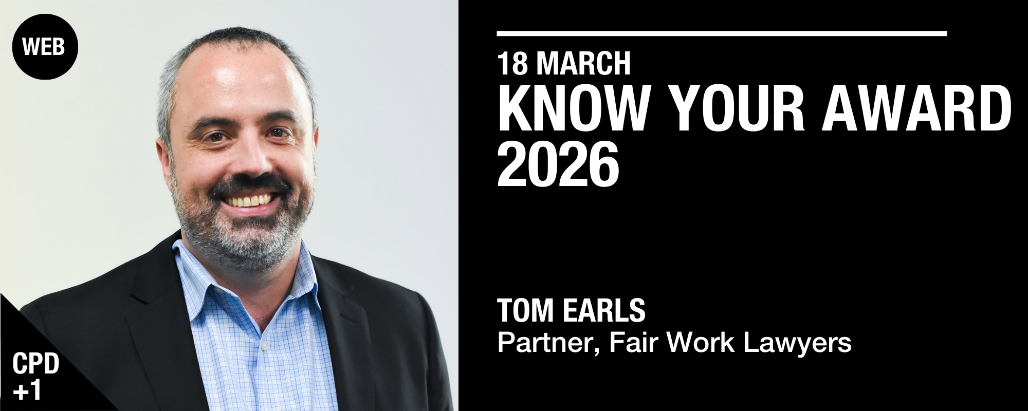Join us on 18 March for an informative CPD webinar with Tom Earls from Fair Work Lawyers, designed to help architectural practices better understand their obligations under the relevant awards and stay up to date with key industrial relations developments.