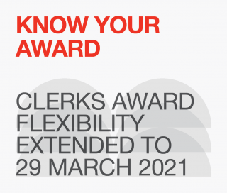 The Clerks Award has been temporarily amended to enable more flexibility during the Coronavirus outbreak.