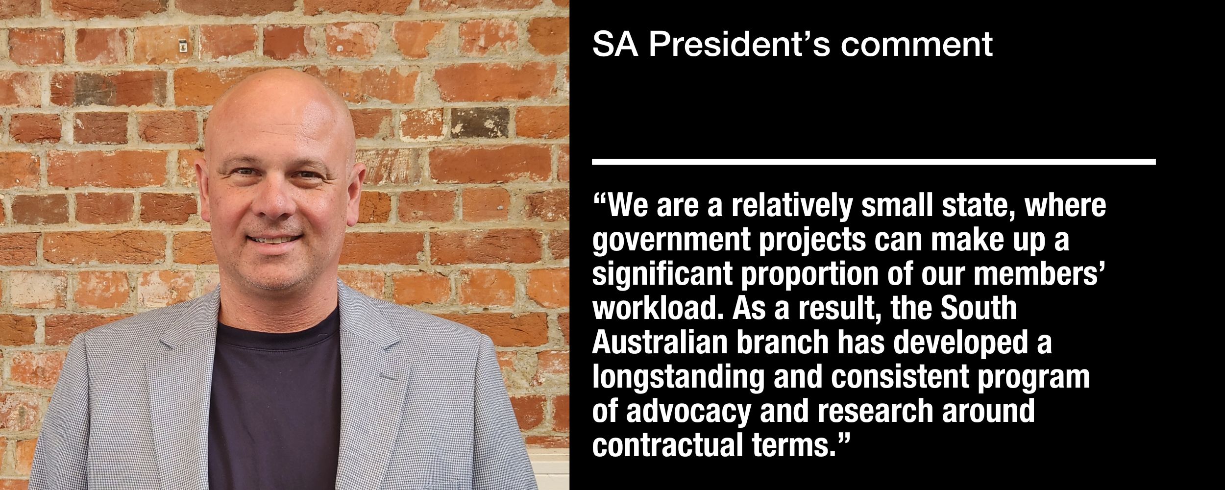 Perhaps it’s South Australia’s proud free settler status that shapes our government’s strong focus on matters of legality, but contract changes and updates are an ever-present topic of discussion for the ACA SA. We are a relatively small state, where government projects can make up a significant proportion of our members’ workload. As a result, the South Australian branch has developed a longstanding and consistent program of advocacy and research around contractual terms.